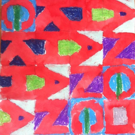 Penghasilan corak terancang menggunakan rupa geometri dalam penggunaan . Mengaplikasikan pengetahuan bahasa seni visual, kefahaman media, serta kemahiran proses dan teknik dalam penghasilan corak cetakan. 2.1.1 unsur seni2.1.1.1rupa organik atau geometri dan gabungan rupa2.1.1.2warna primer, sekunder dan gabungan warna primer dan sekunder2.1.1.